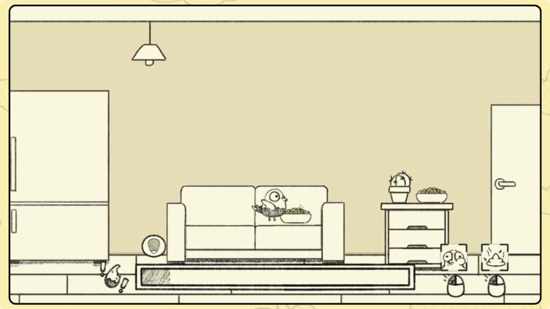 You play as a determined pigeon parent on a mission to keep your hungry squabs alive. Seeds are scattered throughout nearby apartment rooms, if you’re brave enough to fly through their open windows and “borrow” a few.